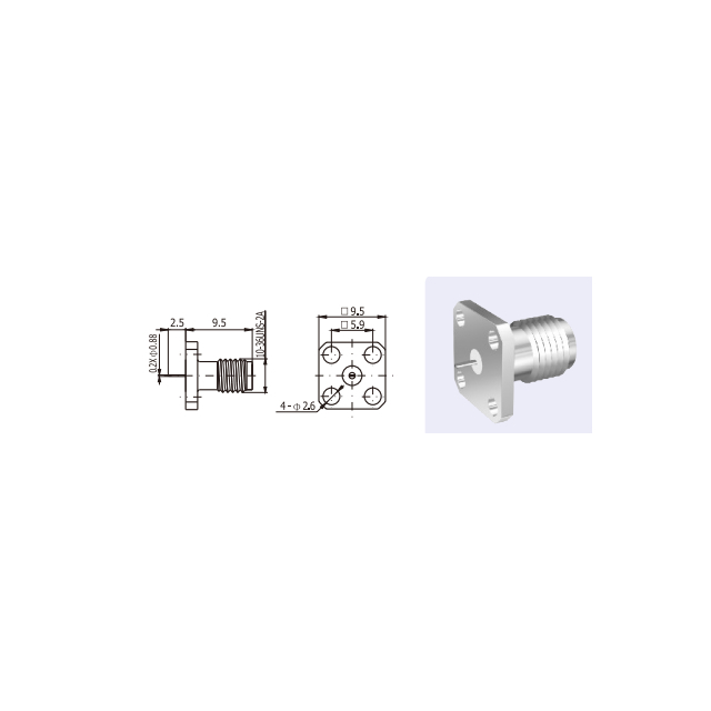 نطاق التردد (جيجاهرتز) 0-35 المعاوقة المميزة (أوم) 50Ω VSWR ≥1.07+0.01f مقاومة العزل ≥1000MΩ عازل الجهد الكهربي 750 فولت (rms) مقاومة الاتصال موصل مركزي ≥4mΩ الموصل الخارجي ≥2.5mΩ موصل SSMA الطول (مم) Ф2.5*9.5 المتانة 500 دورات المواد والطلاء الجسم نحاس، مطلي بالذهب جهات اتصال مركز الذكور نحاس، مطلي بالذهب جهات اتصال مركز الإناث نحاس البريليوم، عوازل مطلية بالذهب PTFE حلقات تجعيد سبائك النحاس، النيكل أو الذهب مطلي نطاق درجة الحرارة -55 ~ + 155 درجة مئوية