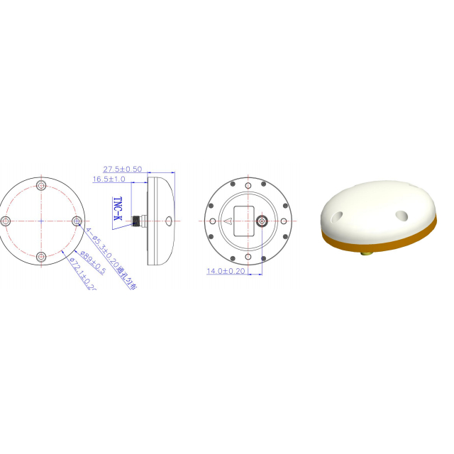 نطاق التردد (MHz) BDS:B1,B2,B3 GPS: L1, L2,L5 GNONASS:G1,G2 Galileo: E1, E5a,E5b كسب الذروة ≥5.5 ديسيبل الاستقطاب RHCP VSWR ≥2.0 النسبة المحورية ≥3dB المعاوقة 50Ω LNA كسب 40±2dB زاوية التغطية الأفقية 360 درجة التسطيح داخل النطاق ± 2 ديسيبل رقم الضوضاء ≥2.0 مركز الطور ± 2 مم جهد التشغيل 3.0 ~ 12 فولت تيار مستمر تيار العمل ≥50 مللي أمبير موصل MMCX الرطوبة 95% درجة حرارة التخزين غير التكثيف -45 درجة مئوية إلى +85 درجة مئوية درجة حرارة التشغيل -40 درجة مئوية إلى +80 درجة مئوية الوزن أقل من 130 جم