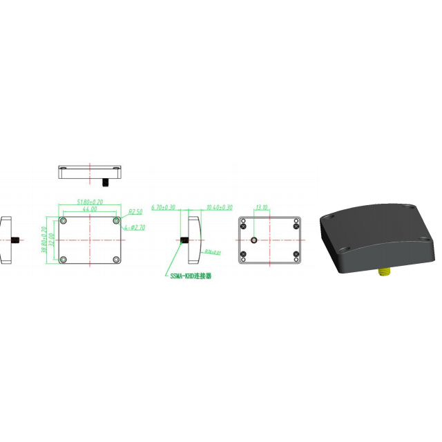 نطاق التردد (MHz) BDS:B1,B2,B3 GPS: L1, L2,L5 GNONASS:G1,G2 Galileo: E1, E5a,E5b كسب الذروة ≥5.5 ديسيبل الاستقطاب RHCP VSWR ≥2.0 النسبة المحورية ≥3dB المعاوقة 50Ω LNA كسب 40±2dB زاوية التغطية الأفقية 360 درجة التسطيح داخل النطاق ± 2 ديسيبل رقم الضوضاء ≥2.0 مركز الطور ± 2 مم جهد التشغيل 3.0 ~ 12 فولت تيار مستمر تيار العمل ≥50 مللي أمبير موصل MMCX الرطوبة 95% درجة حرارة التخزين غير التكثيف -45 درجة مئوية إلى +85 درجة مئوية درجة حرارة التشغيل -40 درجة مئوية إلى +80 درجة مئوية الوزن أقل من 130 جم
