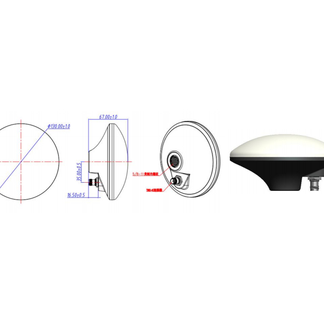 نطاق التردد (MHz) BDS:B1,B2,B3 GPS: L1, L2,L5 GNONASS:G1,G2 Galileo: E1, E5a,E5b كسب الذروة ≥5.5 ديسيبل الاستقطاب RHCP VSWR ≥2.0 النسبة المحورية ≥3dB المعاوقة 50Ω LNA كسب 40±2dB زاوية التغطية الأفقية 360 درجة التسطيح داخل النطاق ± 2 ديسيبل رقم الضوضاء ≥2.0 مركز الطور ± 2 مم جهد التشغيل 3.0 ~ 12 فولت تيار مستمر تيار العمل ≥50 مللي أمبير موصل MMCX الرطوبة 95% درجة حرارة التخزين غير التكثيف -45 درجة مئوية إلى +85 درجة مئوية درجة حرارة التشغيل -40 درجة مئوية إلى +80 درجة مئوية الوزن أقل من 130 جم